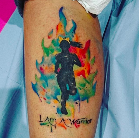 First she left her footprint on the course. Then, she left her footprint on her skin. These tats show incredible detail and nail the Tough Mudder color scheme.